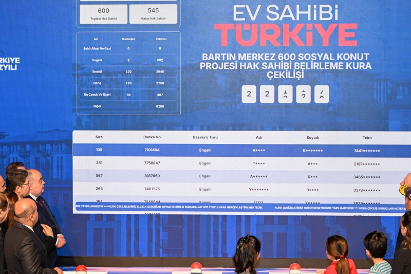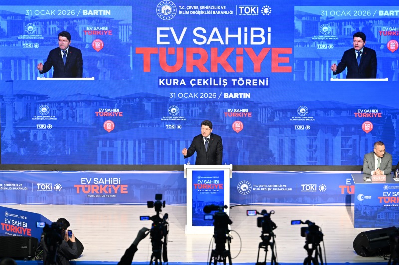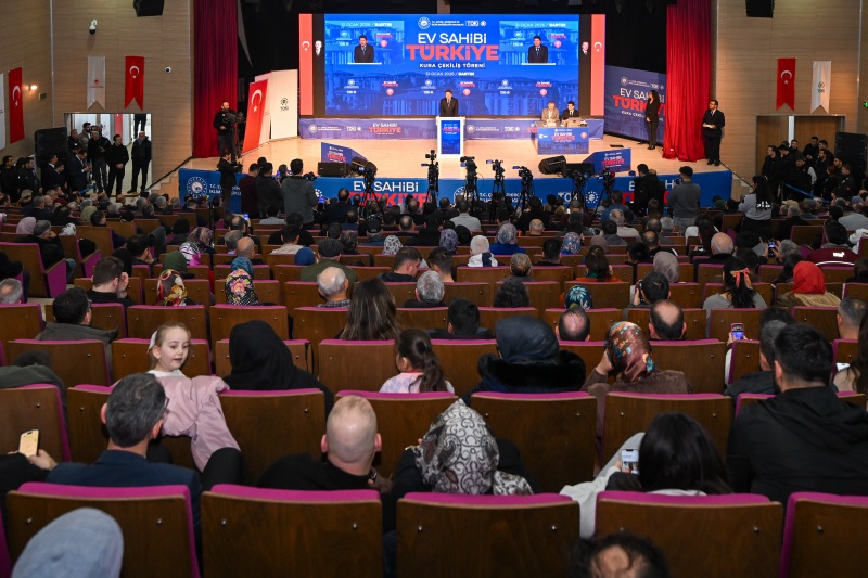 Bakan Yılmaz Tunç, Bartın Üniversitesi konferans salonunda "Yüzyılın Konut Projesi" kapsamında Bartın'da inşa edilecek 1620 sosyal konutun hak sahipleri için düzenlenen "Ev Sahibi Türkiye Kura Çekiliş Töreni"ne katıldı. Törende konuşan Bakan Tunç, bugün, 3 yıl önce 6 Şubat Depremleri’nde yerle bir olan 11 ilde 455 bin konutu 2,5 yılda inşa eden ve ülke genelinde de 500 bin sosyal konutu açıklayarak vatandaşlarını ev sahibi yapmak isteyen bir Türkiye olduğunu söyledi.